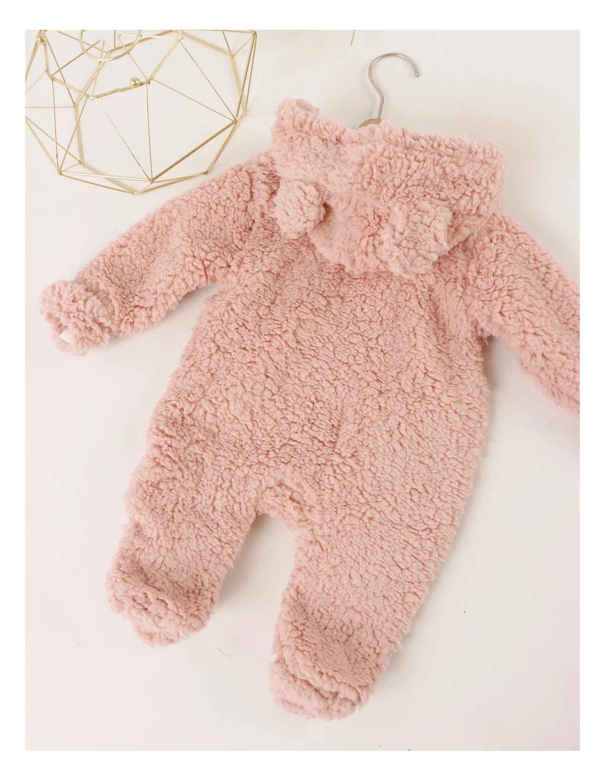 O salopetă pufoasă și călduroasă, perfectă pentru zilele reci! Realizată din material moale de cocolino la exterior și bumbac delicat la interior, oferă confort și protecție pentru pielea sensibilă a bebelușei. Modelul este prevăzut cu două fermoare frontale pentru o îmbrăcare ușoară, glugă cu urechiușe adorabile și botosei încorporați care mențin piciorușele calde. O alegere ideală pentru plimbări sau somn, combinând perfect căldura, confortul și stilul.