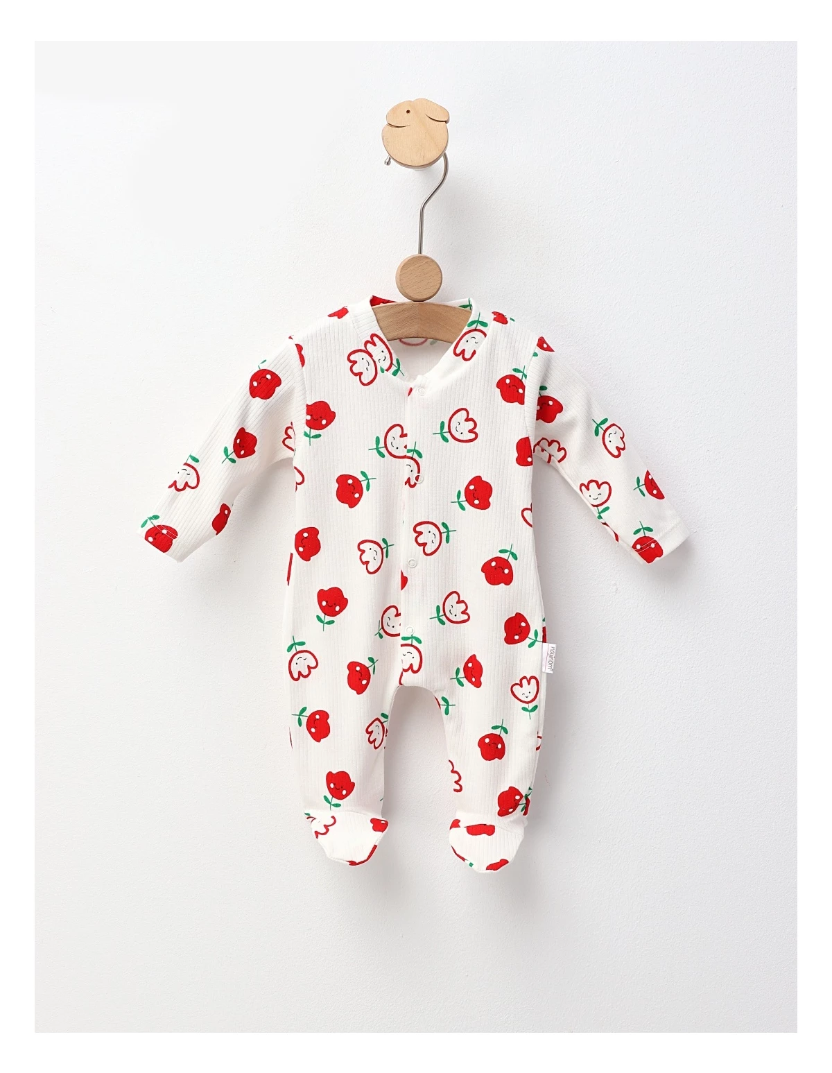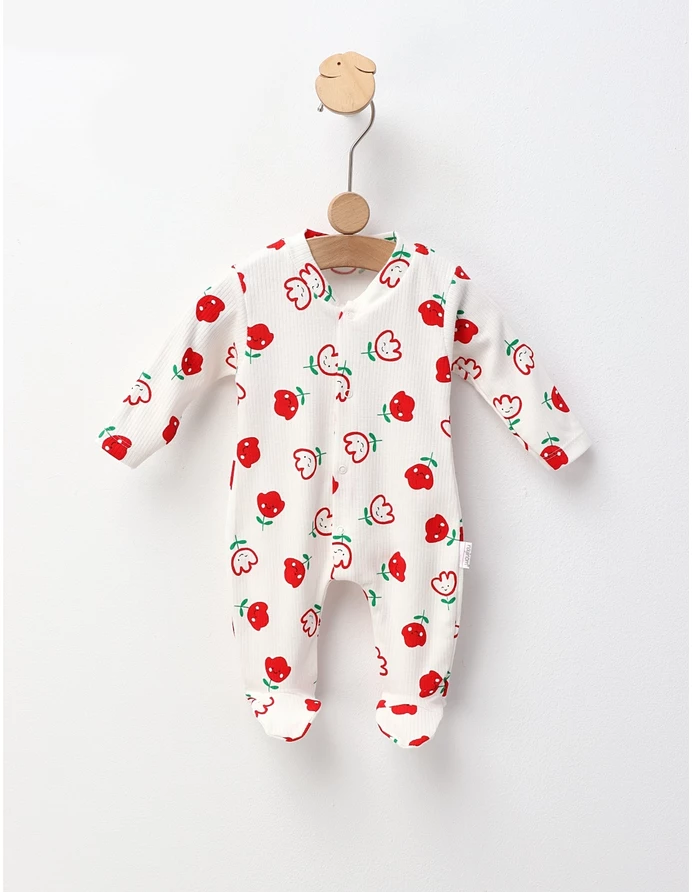 Salopetă pentru bebeluși, cu botoșei integrați, ideală pentru confortul celor mici. Este prevăzută cu deschidere în capse pentru o îmbrăcare ușoară și are un imprimeu adorabil cu Lalele care îi va face pe toți să zâmbească. Confecționată din 100% bumbac, această salopetă oferă o senzație plăcută pe piele și este perfectă pentru joaca zilnică sau momentele de relaxare. Fiecare detaliu este gândit pentru a asigura confort și stil bebelușului tău.