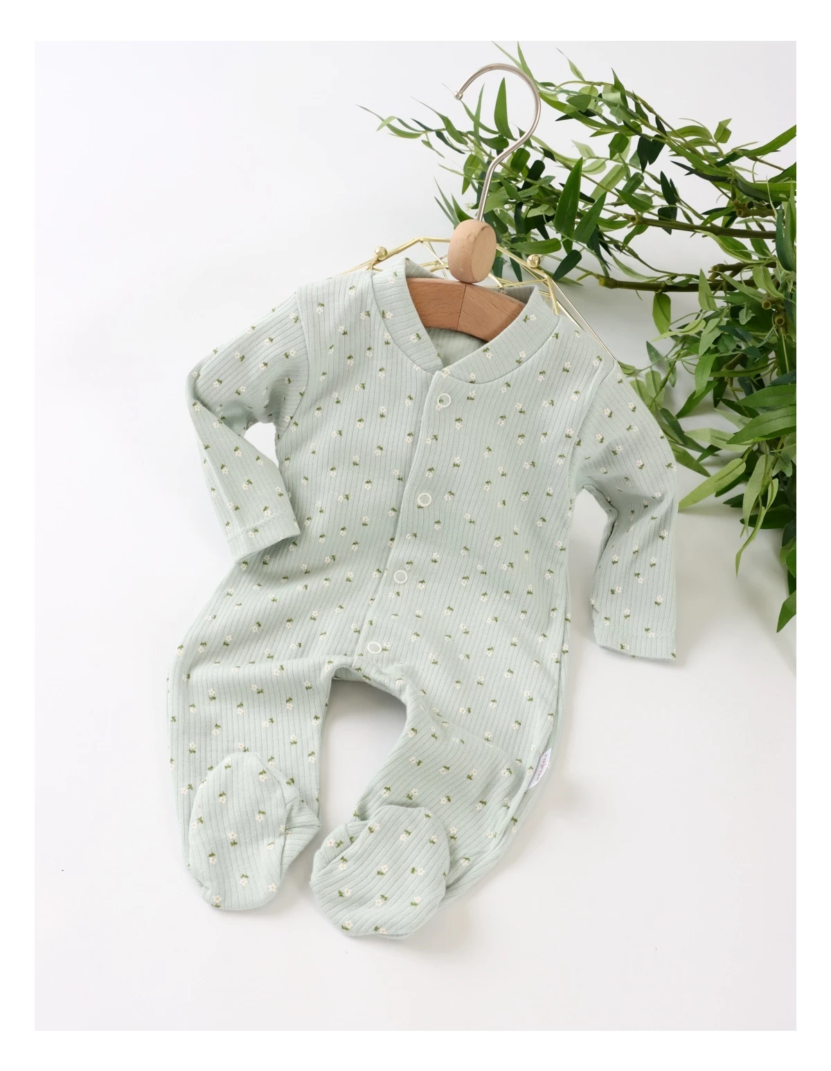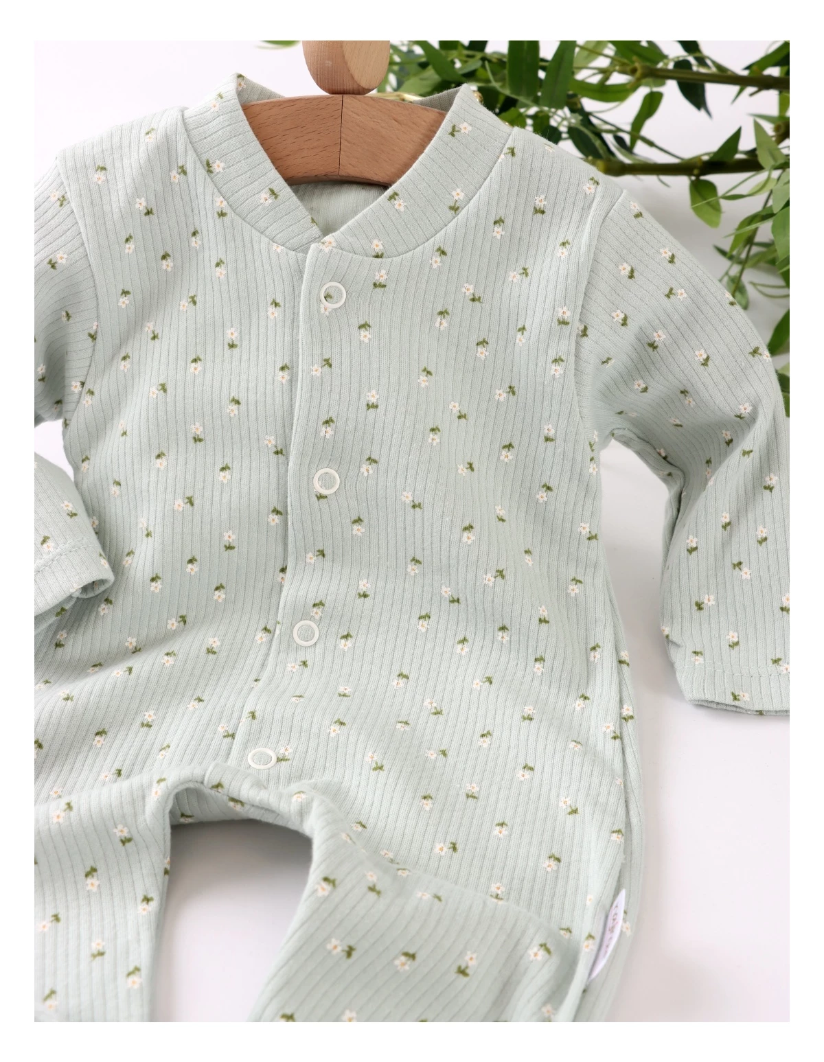 Salopetă bebeluși, deschidere capse față, model cu floricele, botosei incorporati, 100% bumbac. Îmbrăcare ușoară, confort și veselie pentru zile pline de joacă!