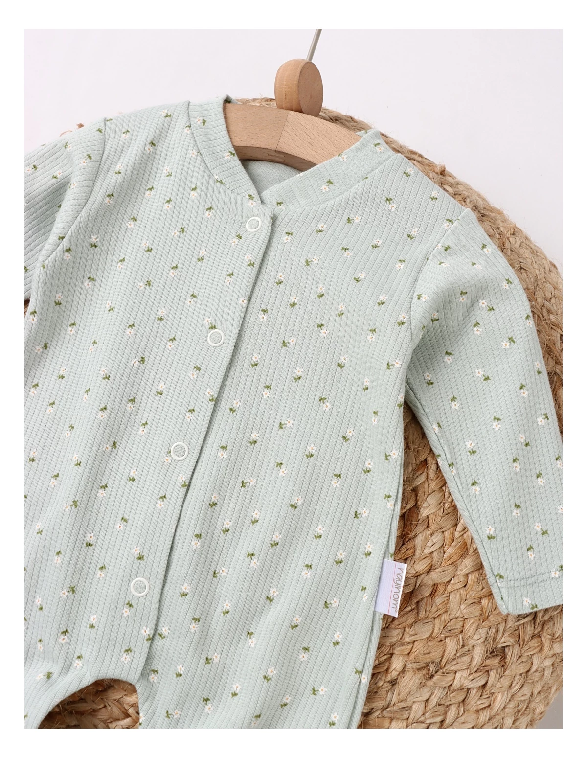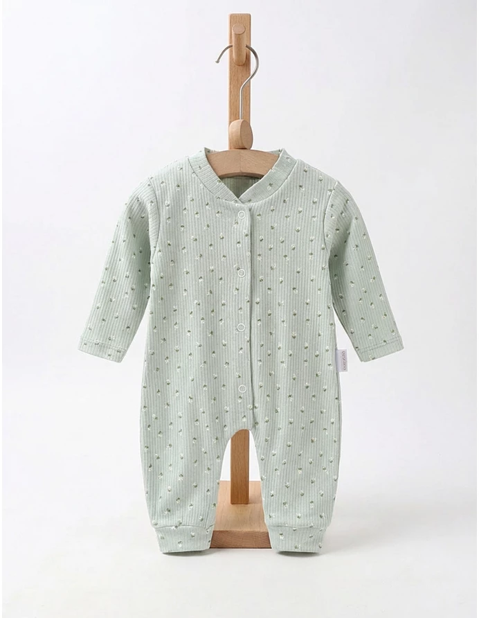 Salopetă bebeluși, deschidere capse față, model cu floricele, 100% bumbac. Îmbrăcare ușoară, confort și veselie pentru zile pline de joacă! Haine bebe, haine bebelusi, haine nou nascut, haine copii.