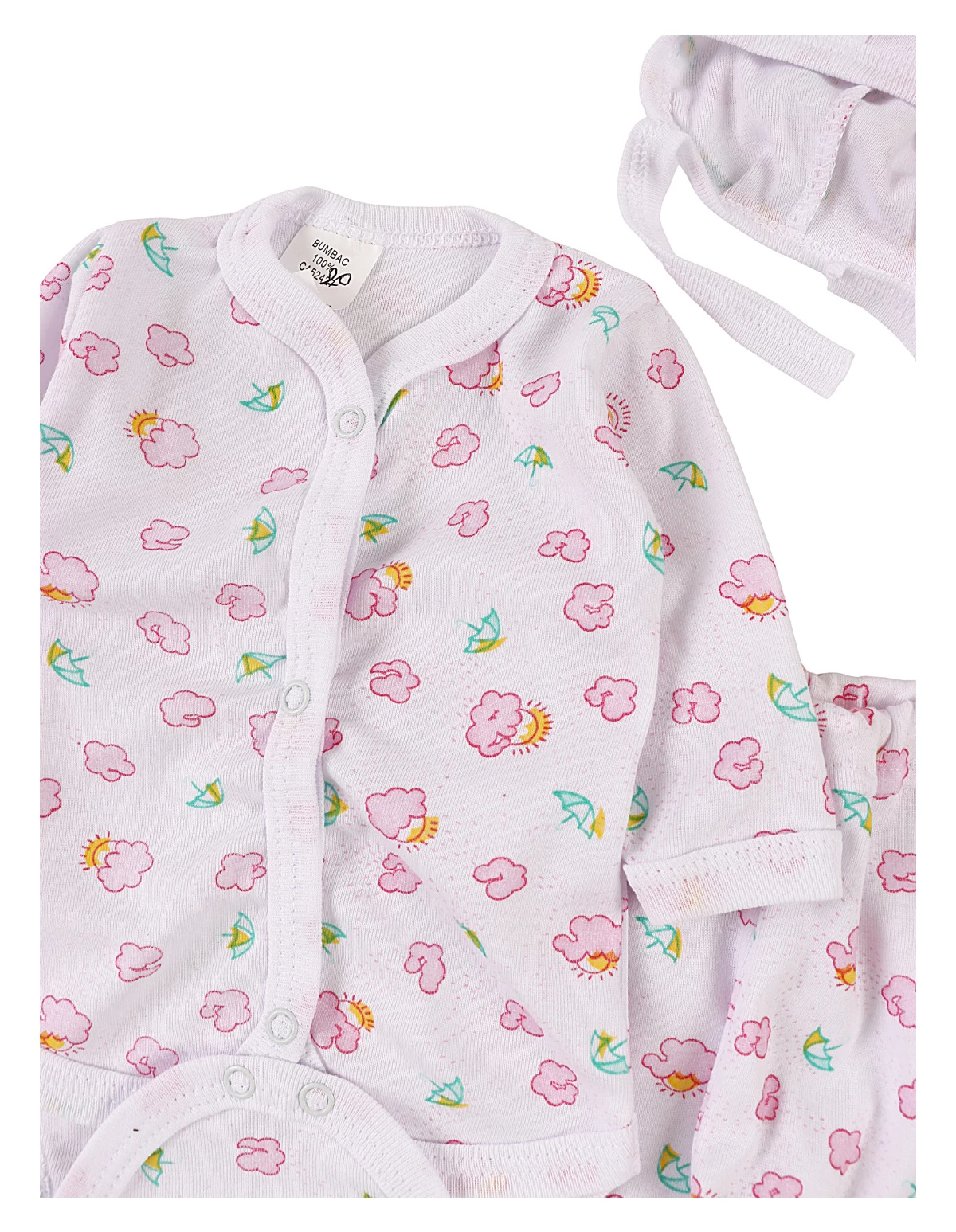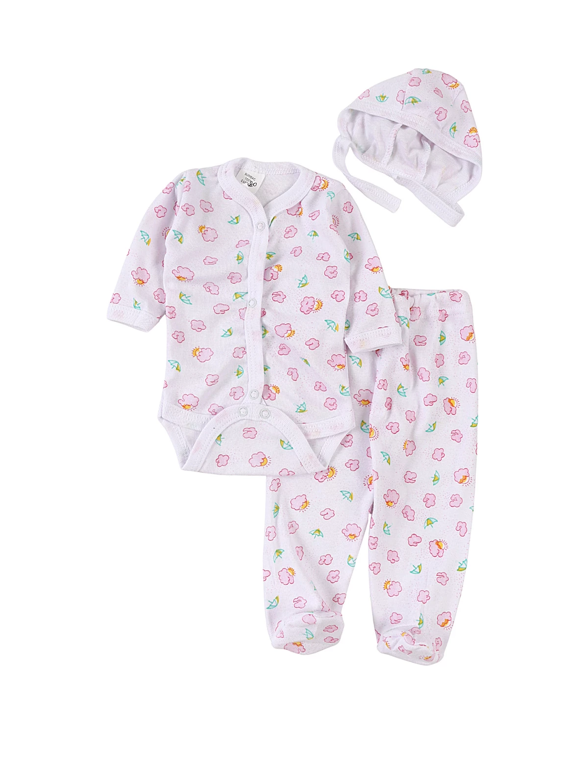 Acest Set de Nou Născut este ideal pentru micuțul tău, combinând confortul și stilul într-un mod încântător. Setul este compus din trei piese esențiale: un body cu deschidere în capse pe partea din față, pantaloni cu botosei și o căciulită în stil tichie ce se leagă sub bărbie. Toate piesele sunt confecționate din 100% bumbac, oferind o senzație de moale și confortabilă pe pielea sensibilă a bebelușului. Fabricat în România, acest set reflectă atât calitatea excepțională, cât și dragostea pentru detaliile minuțioase.