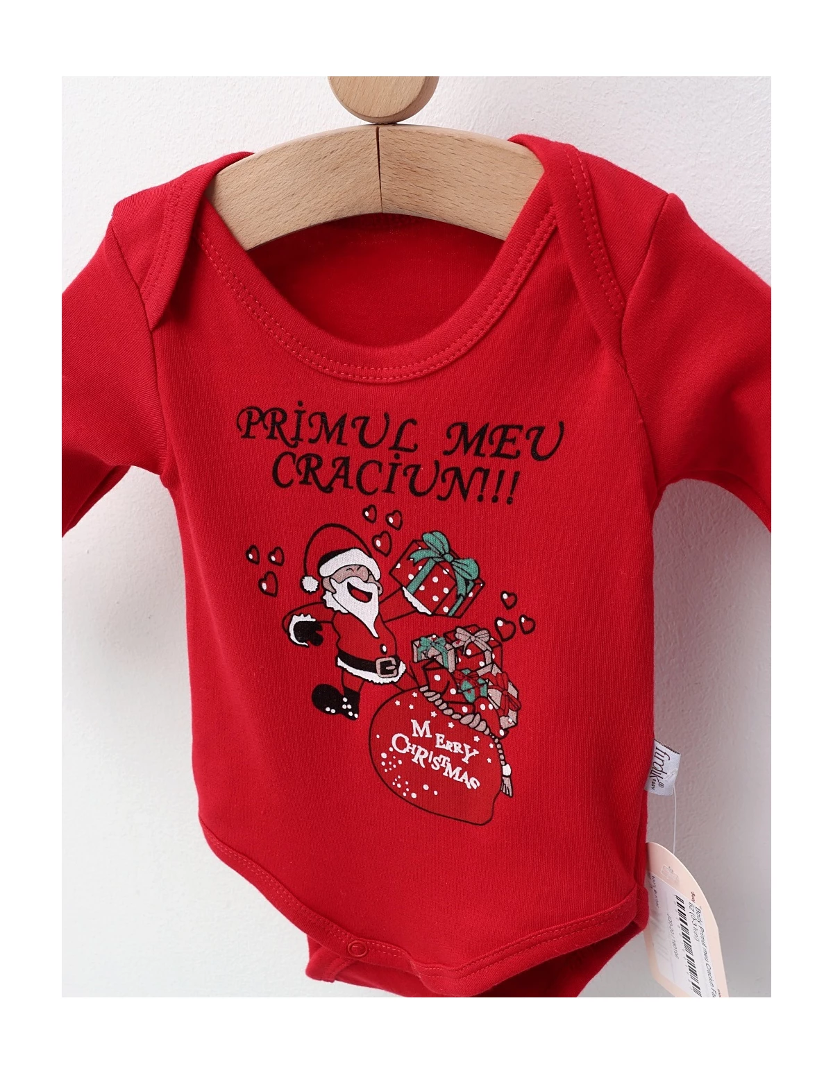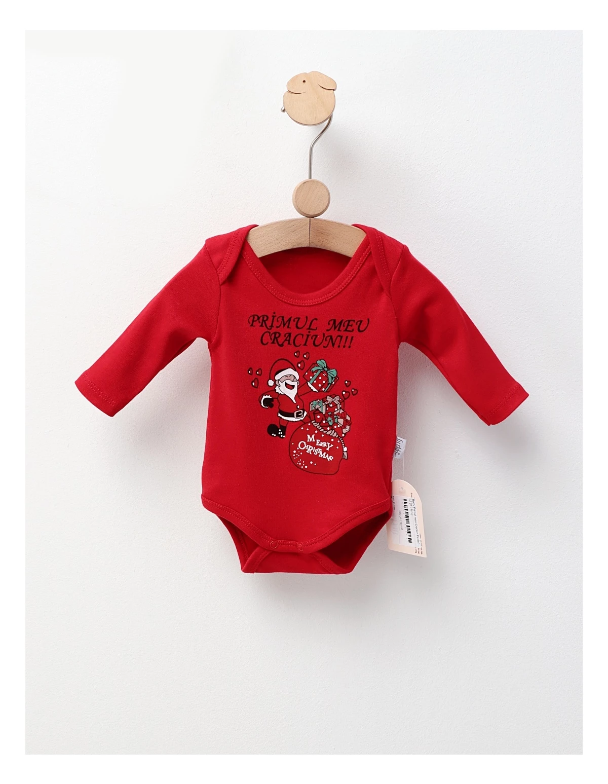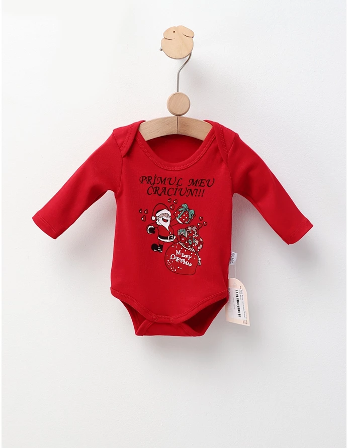 Body de Craciun copii deschis in capse intre picioruse, material 100% bumbac.