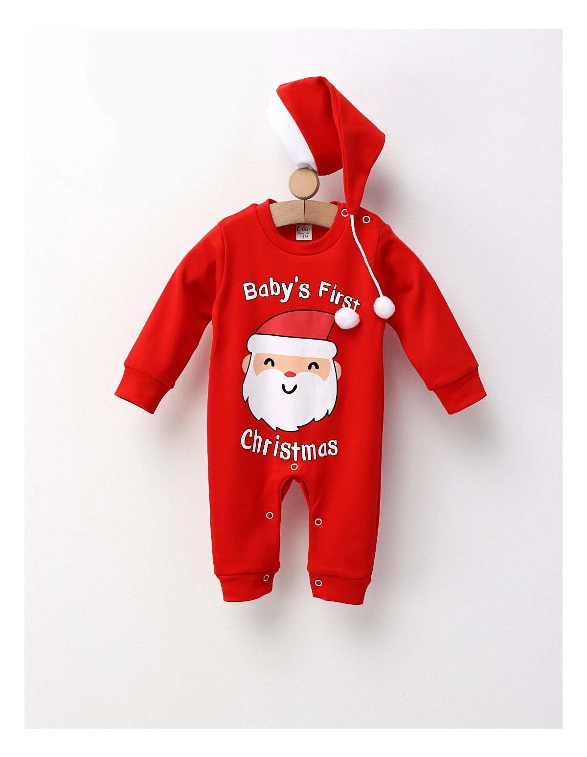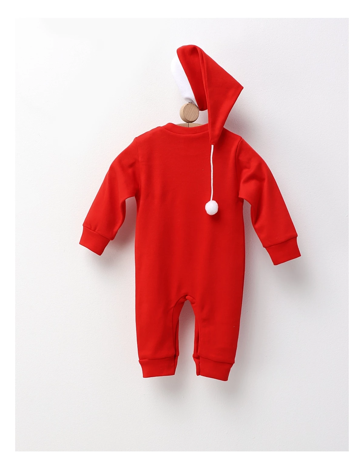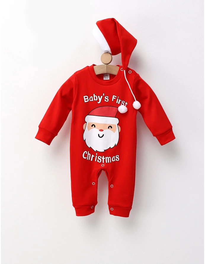 Salopeta Craciun 100% bumbac deschisa in capse pe umar si intre picioruse si fes.