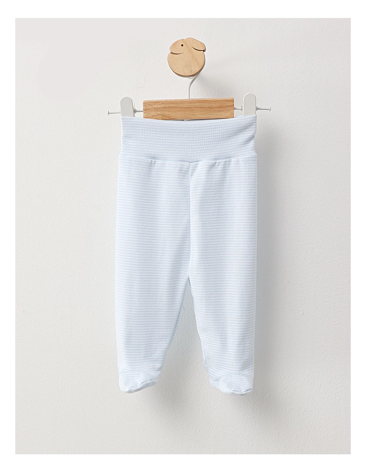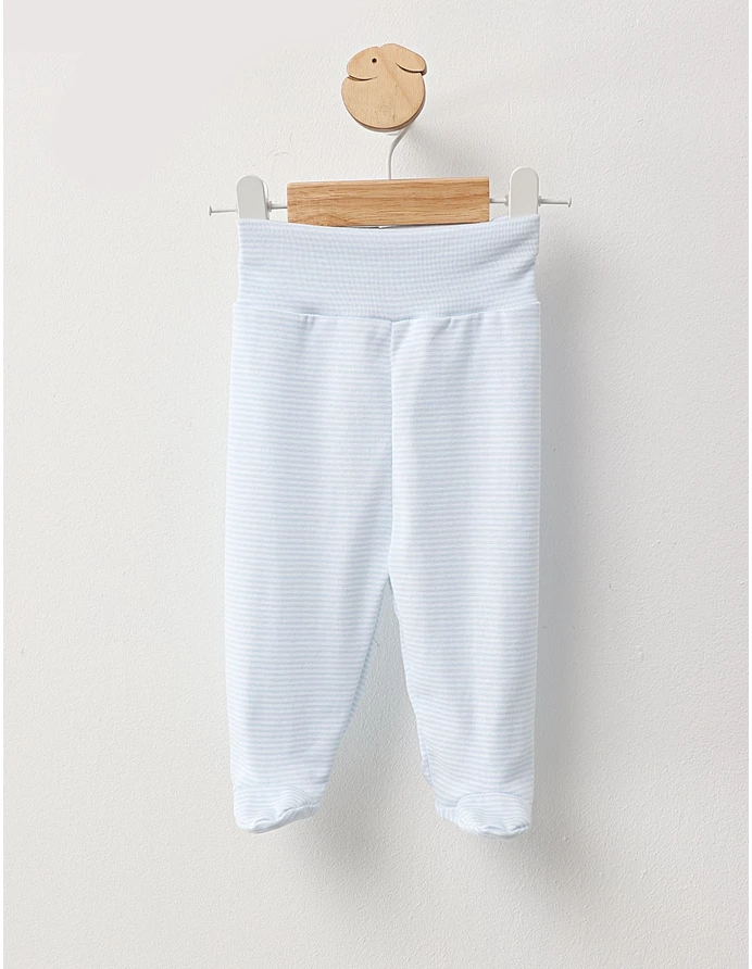 Pantaloni cu banda elastica la brau pentru a nu strange bebelusul, model cu botosei. Material 100% bumbac. Fabricat in Romania.