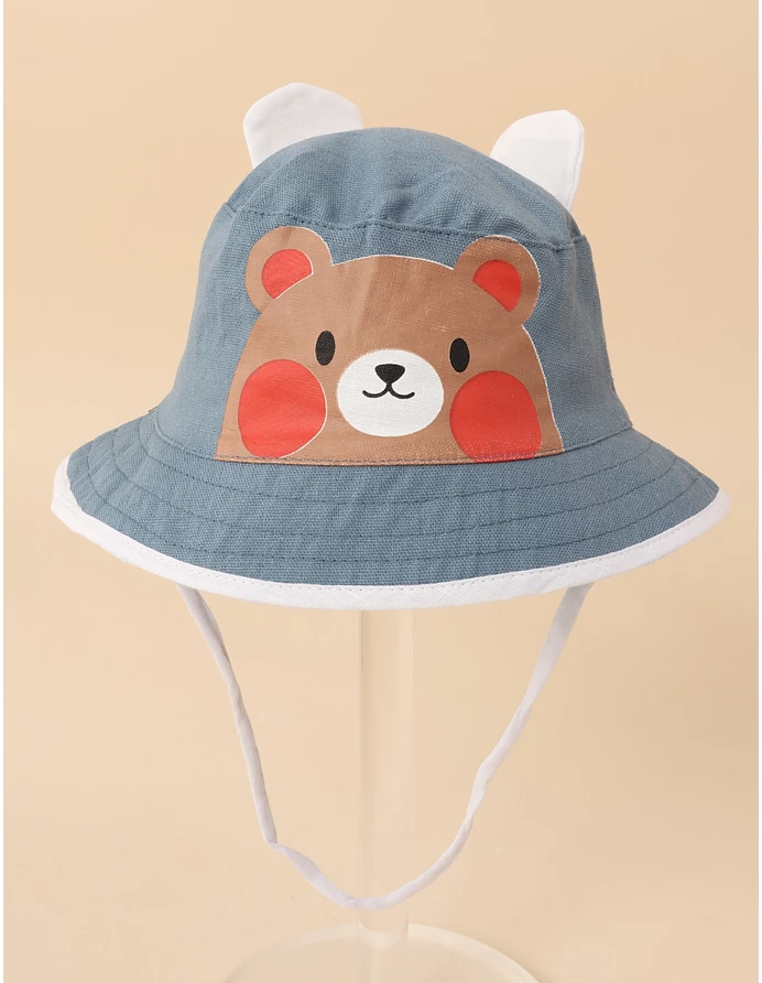 - Descoperă pălăria pentru băieței cu imprimeu adorabil de ursuleț, snuruleț reglabil și urechiușe jucause.