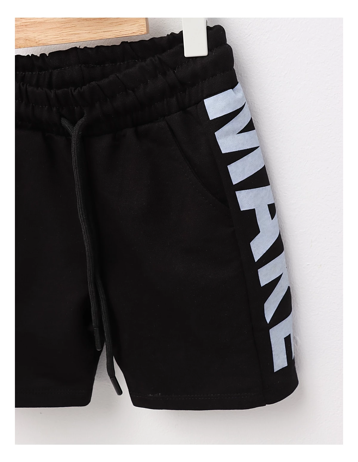 Pantaloni scurți pentru băieței, cu elastic în talie, snur ajustabil și buzunare laterale, confecționați dintr-un material confortabil format din 70% bumbac și 30% poliester. Cu un stil urban modern, acești pantaloni sunt perfecți pentru zilele active, plimbări în aer liber sau activități casual, oferind libertate de mișcare și un aspect stylis