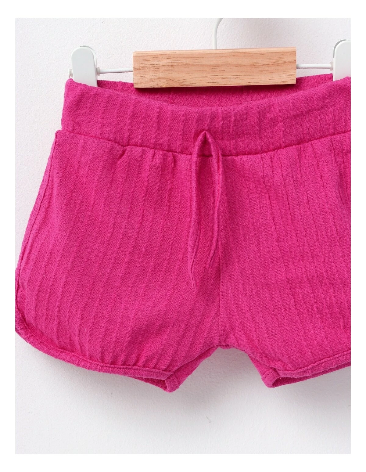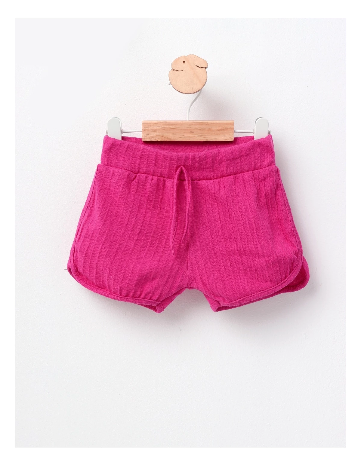 Pantaloni scurți pentru fetițe între 5-8 ani, cu elastic lat în talie, confecționați dintr-un material confortabil din 95% bumbac și 5% elastan. Ideali pentru zilele calde, oferind libertate de mișcare și un stil casual, perfect pentru activități în aer liber sau ieșiri în oraș.
