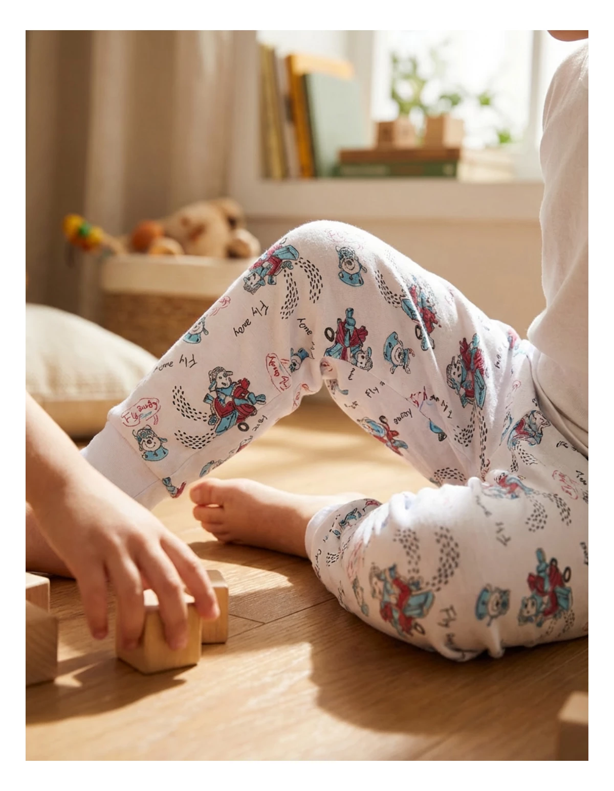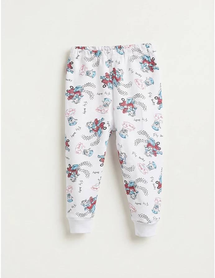 Pantaloni de pijama pentru copii cu imprimeuri vesele, echipați cu elastic în talie pentru confort. Confecționați din 100% bumbac, sunt perfecți pentru somnul de noapte. Fabricați în România.