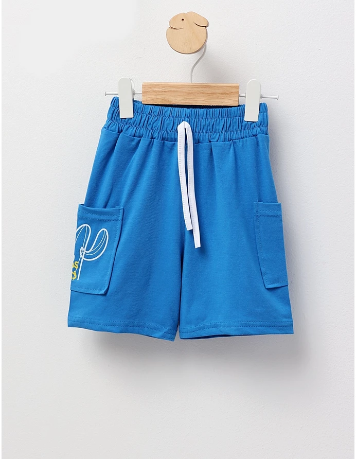 Pantaloni scurți pentru băieței, cu elastic în talie și buzunare laterale, realizați dintr-un material lejer format din 95% bumbac și 5% elastan. Perfecți pentru zilele calde, oferă confort, libertate de mișcare și un stil casual ideal pentru activități în aer liber sau perioade de relaxare.