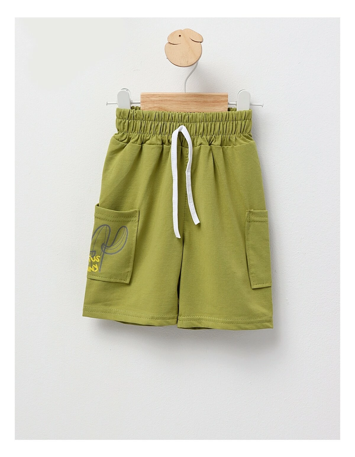 Pantaloni scurți pentru băieței, cu elastic în talie și buzunare laterale, realizați dintr-un material lejer format din 95% bumbac și 5% elastan. Perfecți pentru zilele calde, oferă confort, libertate de mișcare și un stil casual ideal pentru activități în aer liber sau perioade de relaxare.