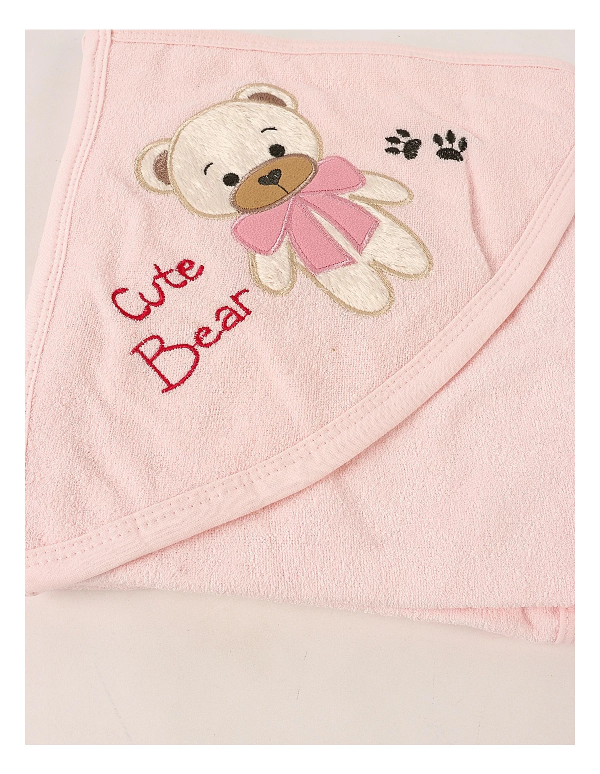 Prosop de baie pentru bebeluși, special conceput pentru confortul și siguranța celor mici. Acest prosop are un design practic cu capișon pentru a menține capul bebelușului cald și uscat după baie. Modelul include o batista din același material moale, facilitând uscarea delicată a pielii bebelușului. Fabricat din 80% bumbac si 20%poliester de înaltă calitate, asigură o absorbție excelentă și confort maxim. Dimensiuni ideale de 80x85 cm pentru o utilizare ușoară și practică.