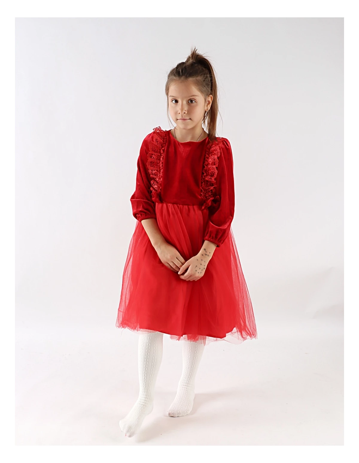Transformă fiecare zi de sărbătoare într-un moment memorabil cu această rochiță elegantă din catifea! Cu un design rafinat, împodobită cu două fundițe adorabile și volane delicate, rochița strălucește prin sofisticare și joc de texturi. Tulle-ul adaugă un aer aristocratic, iar jupa de dedesubt asigură o protecție optimă a pielii, astfel încât micuța ta să se simtă confortabil și fericită. Deschiderea cu fermoar în spate facilitează îmbrăcarea rapidă. Perfectă pentru petreceri festive, aniversări sau orice ocazie specială, această rochiță va aduce un strop de magie și eleganță în garderoba ei!