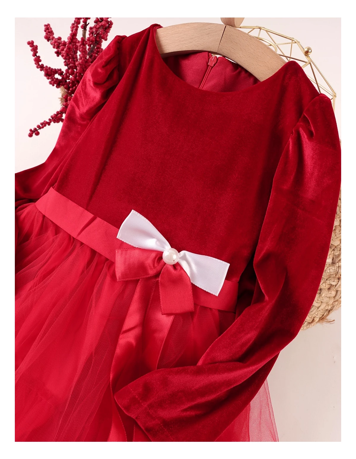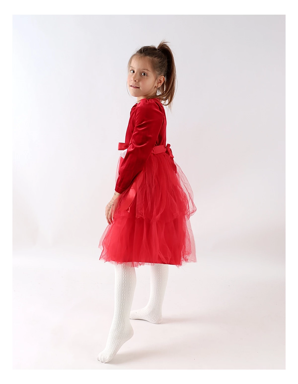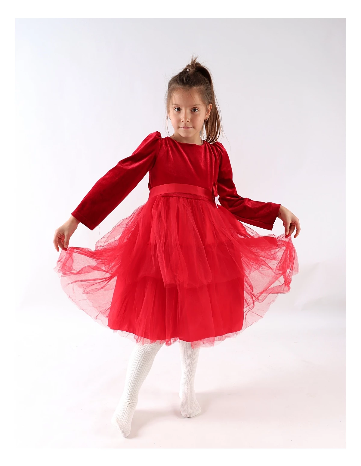Îmbracă-ți micuța cu eleganță și rafinament în această rochiță din catifea, care va deveni favorita zilelor de sărbătoare! Detaliul special al fundiței cu perlă adaugă un strop de strălucire, învăluind întreaga ținută într-o aură de sofisticare. Tulle-ul delicat conferă rochiței un aspect airy, iar jupa de dedesubt protejează pielea, asigurând confortul necesar în timpul purtării. Cu deschiderea inteligentă cu fermoar în spate, rochița este ușor de îmbrăcat, făcând-o perfectă pentru evenimente festive, petreceri sau momente speciale alături de familie și prieteni. Fiecare detaliu este gândit cu grijă pentru a oferi nu doar stil, ci și bucurie!