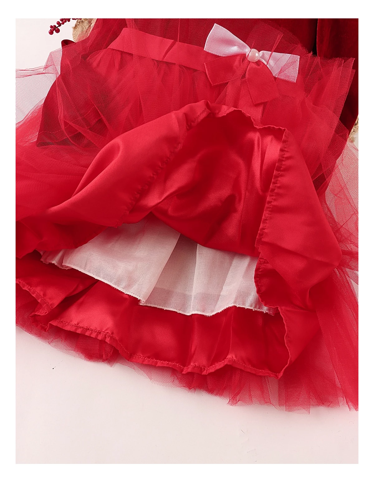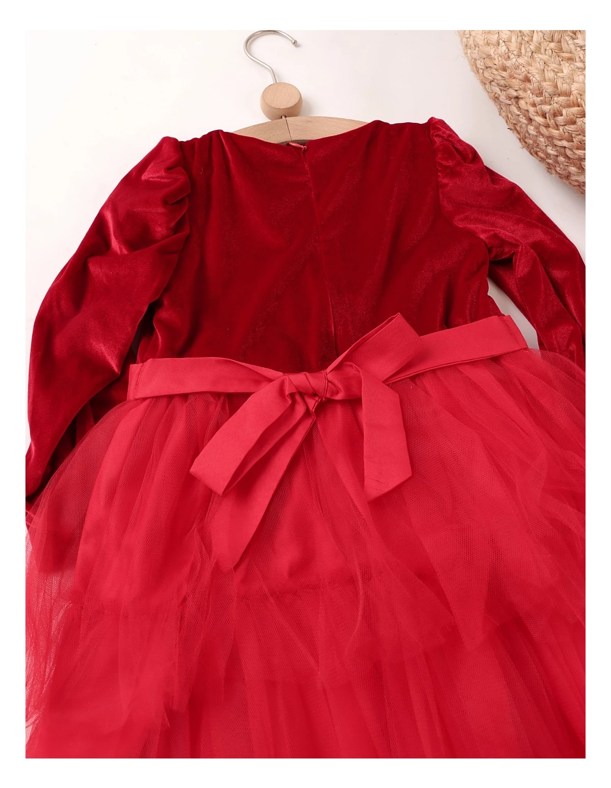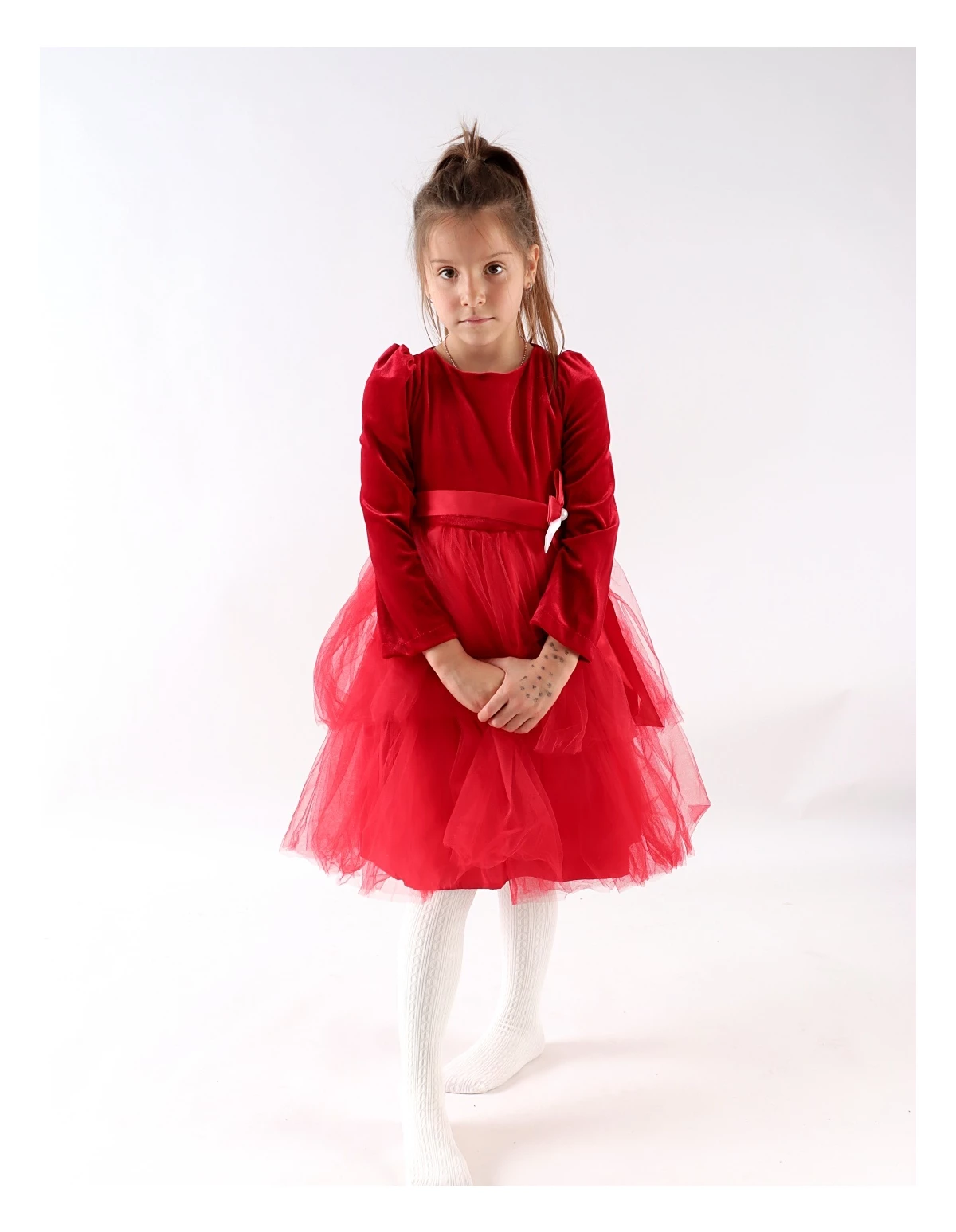 Îmbracă-ți micuța cu eleganță și rafinament în această rochiță din catifea, care va deveni favorita zilelor de sărbătoare! Detaliul special al fundiței cu perlă adaugă un strop de strălucire, învăluind întreaga ținută într-o aură de sofisticare. Tulle-ul delicat conferă rochiței un aspect airy, iar jupa de dedesubt protejează pielea, asigurând confortul necesar în timpul purtării. Cu deschiderea inteligentă cu fermoar în spate, rochița este ușor de îmbrăcat, făcând-o perfectă pentru evenimente festive, petreceri sau momente speciale alături de familie și prieteni. Fiecare detaliu este gândit cu grijă pentru a oferi nu doar stil, ci și bucurie!