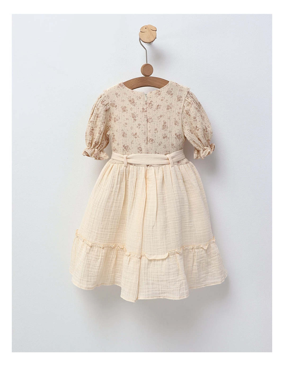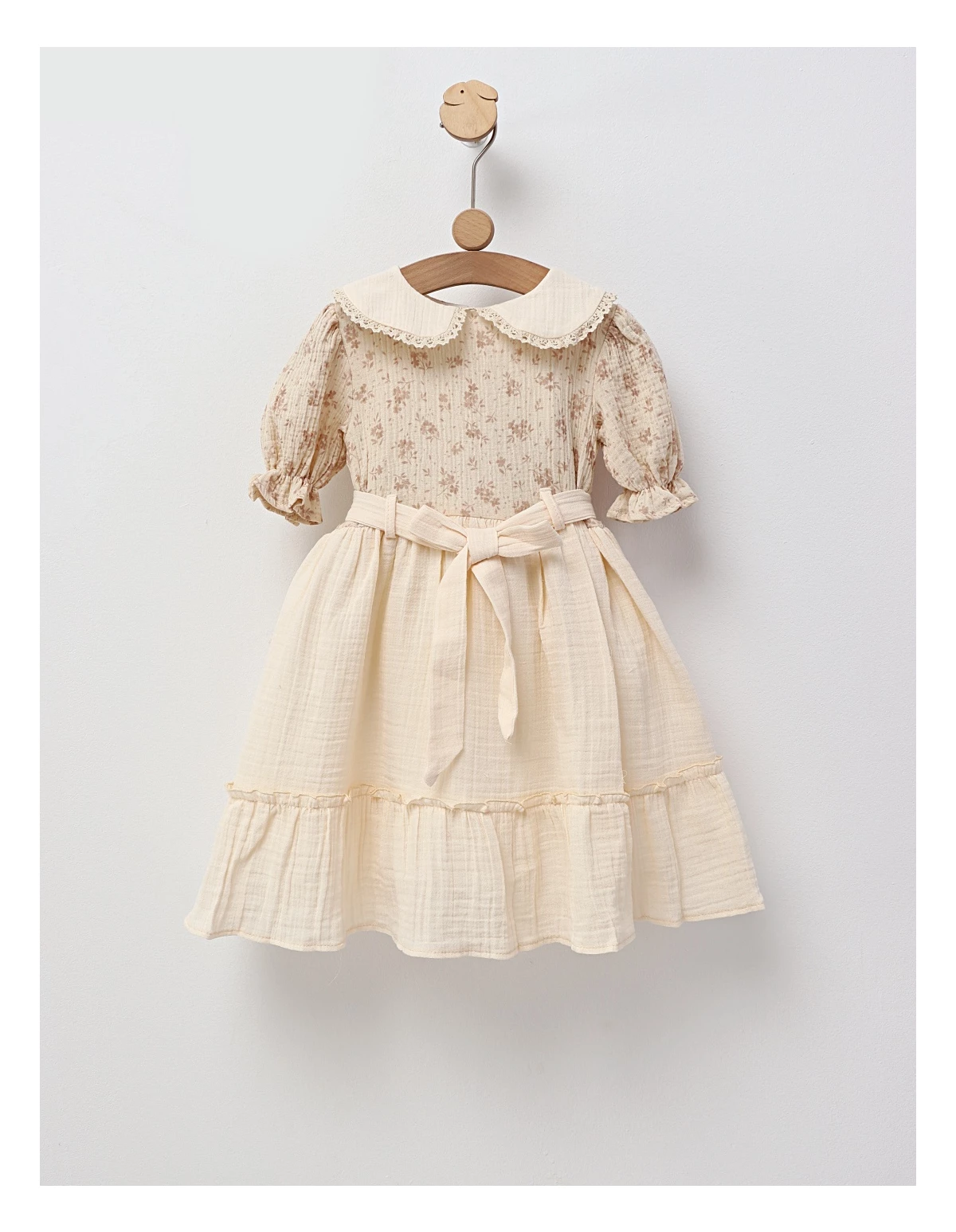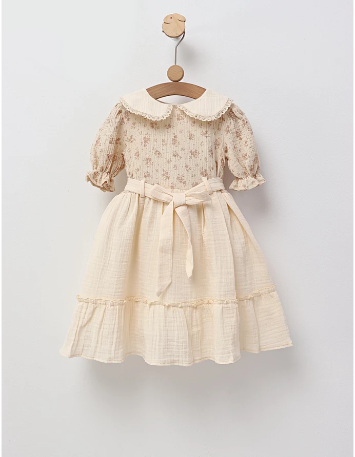 O rochiță ca din povești, creată pentru micile prințese care visează cu ochii deschiși. ✨ Această rochie premium din muselină îmbină delicatețea cu rafinamentul: are mânecuțe scurte, un guler brodat fin și floricele elegante pe partea superioară. Cordonul din talie se leagă într-o fundiță adorabilă în față, adăugând un strop de gingășie. Se închide cu fermoar la spate și ascunde două jupe lejere – una din voal diafan și una din bumbac moale – pentru volum și confort. Potrivită pentru fetițe de 5 până la 8 ani, această rochiță este ideală pentru aniversări, evenimente speciale sau pur și simplu… pentru a se simți deosebite. Material: 80% bumbac, 20% poliester – plăcut la atingere, perfect pentru pielea sensibilă.