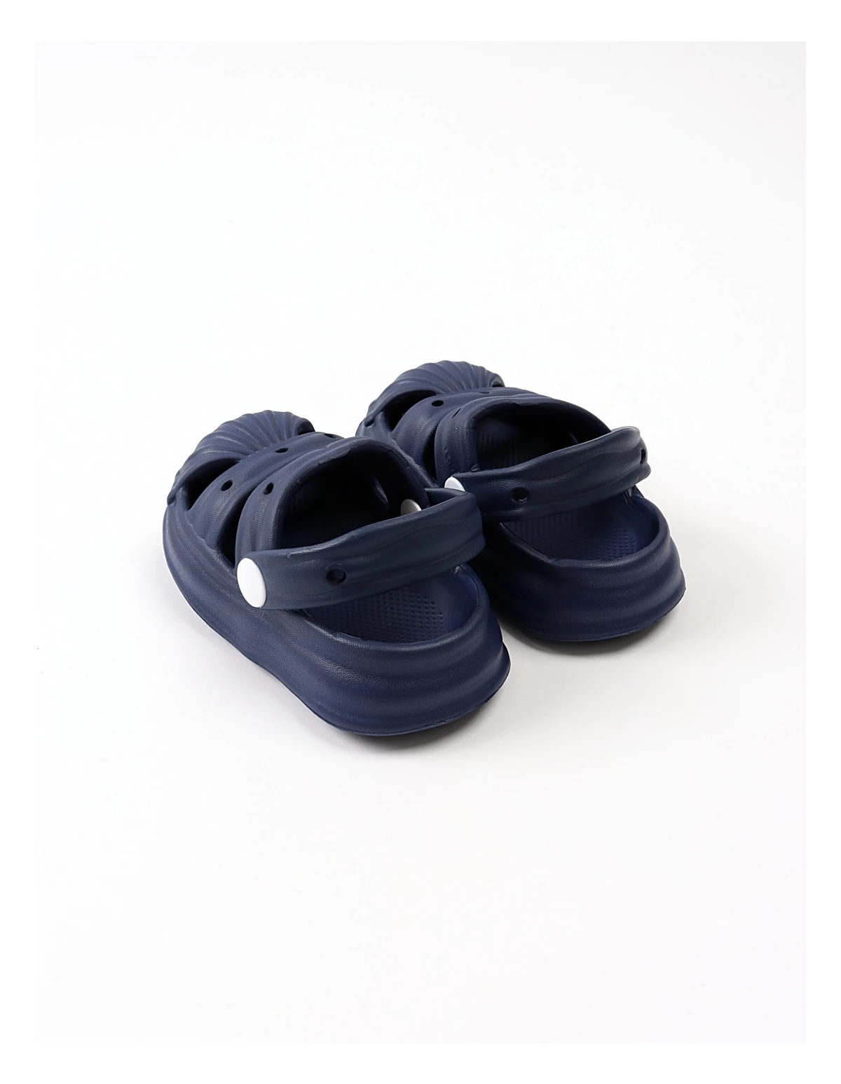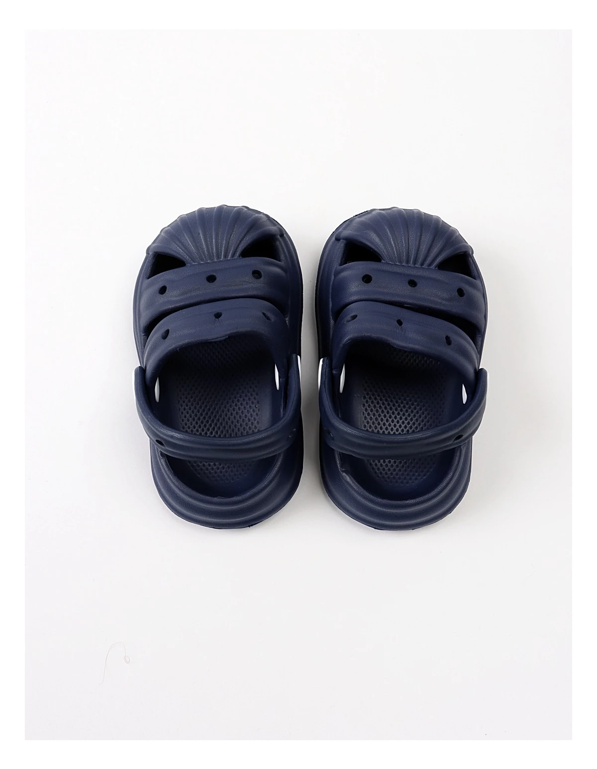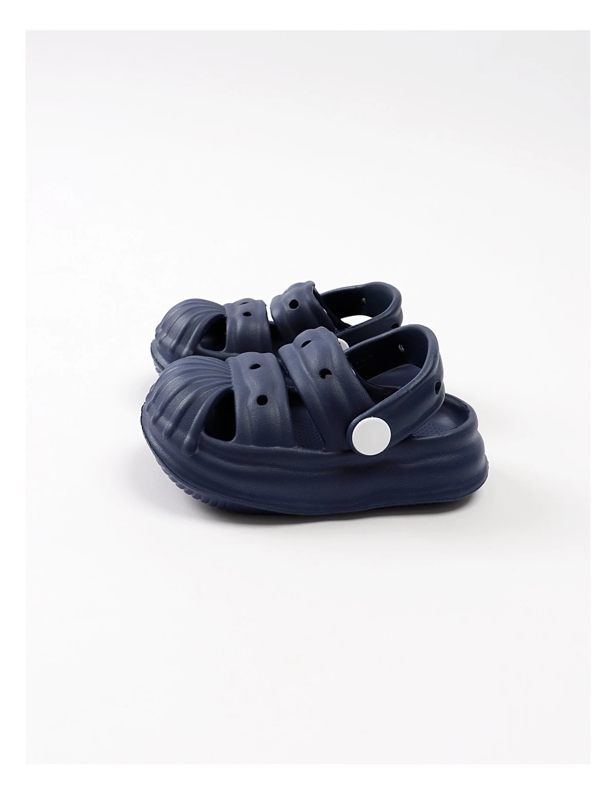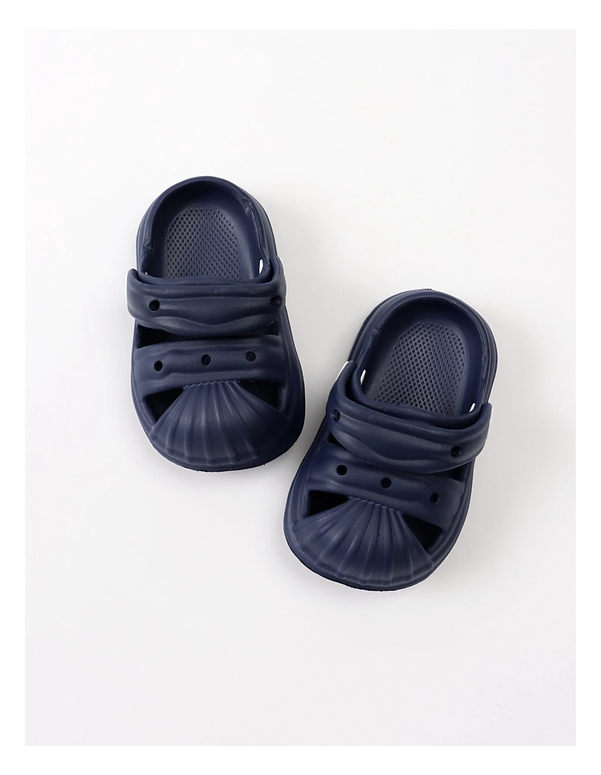 Papuci de spumă tip sandale pentru băieței – confort și lejeritate Acești papuci sunt perfecți pentru băieței datorită designului practic și comod. Modelul tip sandale are orificii pe partea superioară, asigurând o bună circulație a aerului și menținând piciorușele răcoroase. Realizați din spumă EVA, sunt extrem de ușori și flexibili, oferind libertate de mișcare și confort pe tot parcursul zilei. Breteaua ajustabilă poate fi purtată atât în față, cât și la spate pentru o fixare sigură. Designul simplu, disponibil în culorile albastru și bleumarin, îi face potriviți pentru orice ținută casual de vară. Compoziția de 90% EVA și 10% material sintetic asigură durabilitate și ușurință în întreținere. Fabricat în P.R.C., acest model este ideal pentru plimbări, joacă sau purtare în casă.
