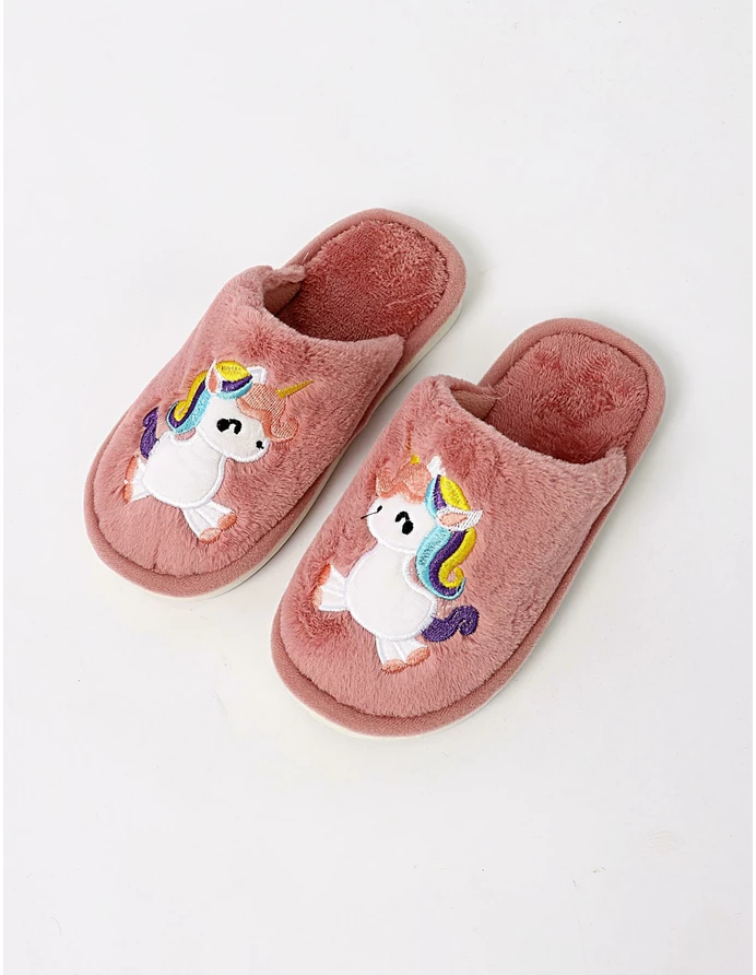Papuci de casa Unicorn model roz-prafuit