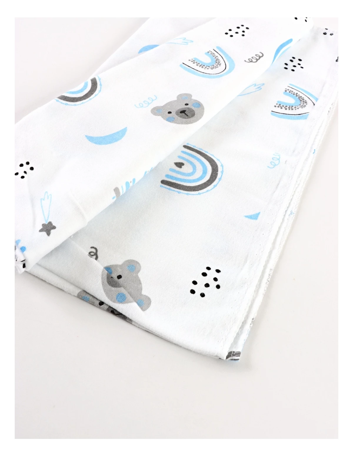 Acest scutec din finet pentru bebeluși, cu un design imprimat atrăgător, este un accesoriu multifuncțional de dimensiuni 75cm x 75cm. Nu numai că servește ca scutec tradițional, dar poate fi utilizat și ca prosop de baie, asternut atunci când schimbați bebelușul sau chiar ca material pentru înfășat. Flexibilitatea și calitatea îl fac un element esențial pentru îngrijirea bebelușilor.